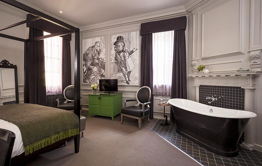 The Judges Court Hotel, nestled in the heart of medieval York, can be accessed through one of the traditional, narrow ginnels (or alleyways for those unfamiliar with the Yorkshire vernacular). Its name originates from its use by high-ranking legal officials in the 18th century - it was even the venue where the verdict was passed to execute the infamous highwayman, Dick Turpin. The hotel's design pays homage to its rich history with an urban influence marked by a black-and-white color scheme, sleek tiled bathrooms and walls adorned with 18th-century-style satirical sketches. Spoil yourself with the premium king room, featuring a freestanding roll-top bathtub strategically placed by the hearth.